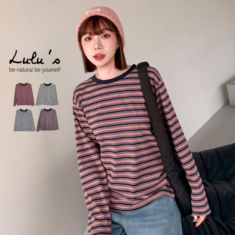 熱賣中🔥 即將售完預購年後到/可愛撞色橫紋圓領長袖上衣4色【A01251145】