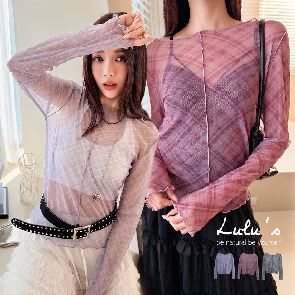 熱賣中🔥 即將售完預購年後到/復古菱格中車線透膚上衣3色【A01251180】