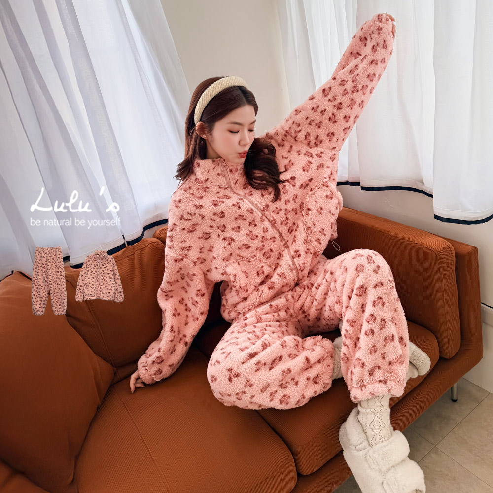 熱賣中🔥 即將售完限時下殺/套裝粉嫩豹紋珊瑚絨拉鍊外套+長褲M-XL粉【A01251222】