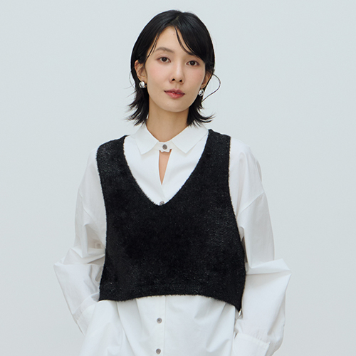 熱賣中🔥 即將售完【KLÚT】大V領混銀紗短版造型針織背心 - 兩色