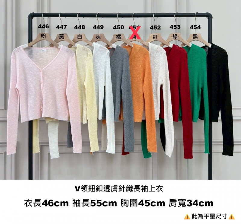 熱賣中🔥 即將售完女V0413-V領鈕釦透膚針織長袖上衣