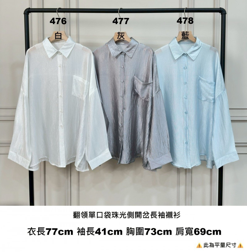 熱賣中🔥 即將售完女V0415-翻領單口袋珠光側開岔長袖襯衫