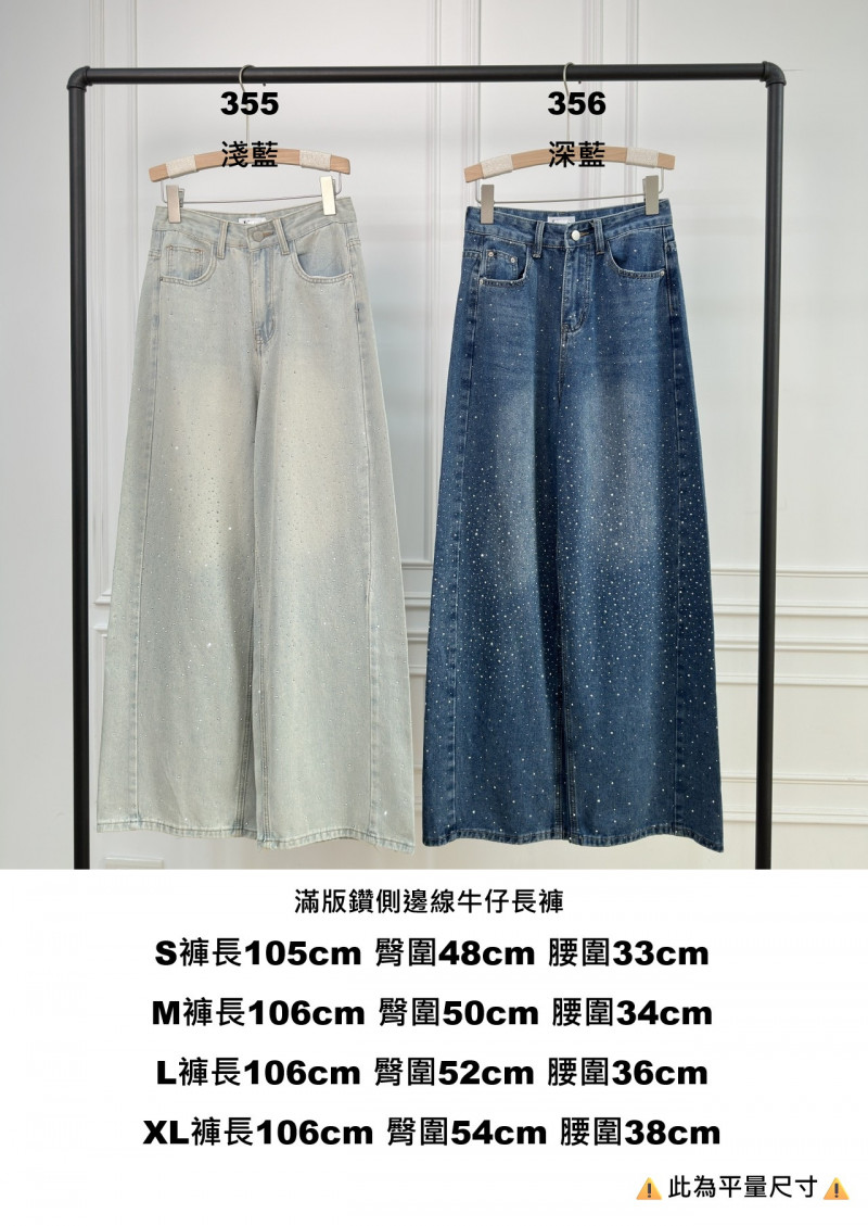 熱賣中🔥 即將售完女V0408-滿版鑽側邊線牛仔長褲