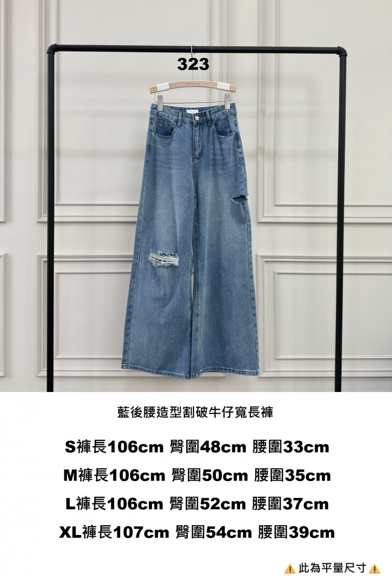 熱賣中🔥 即將售完女YL0326-323藍後腰造型割破牛仔寬長褲