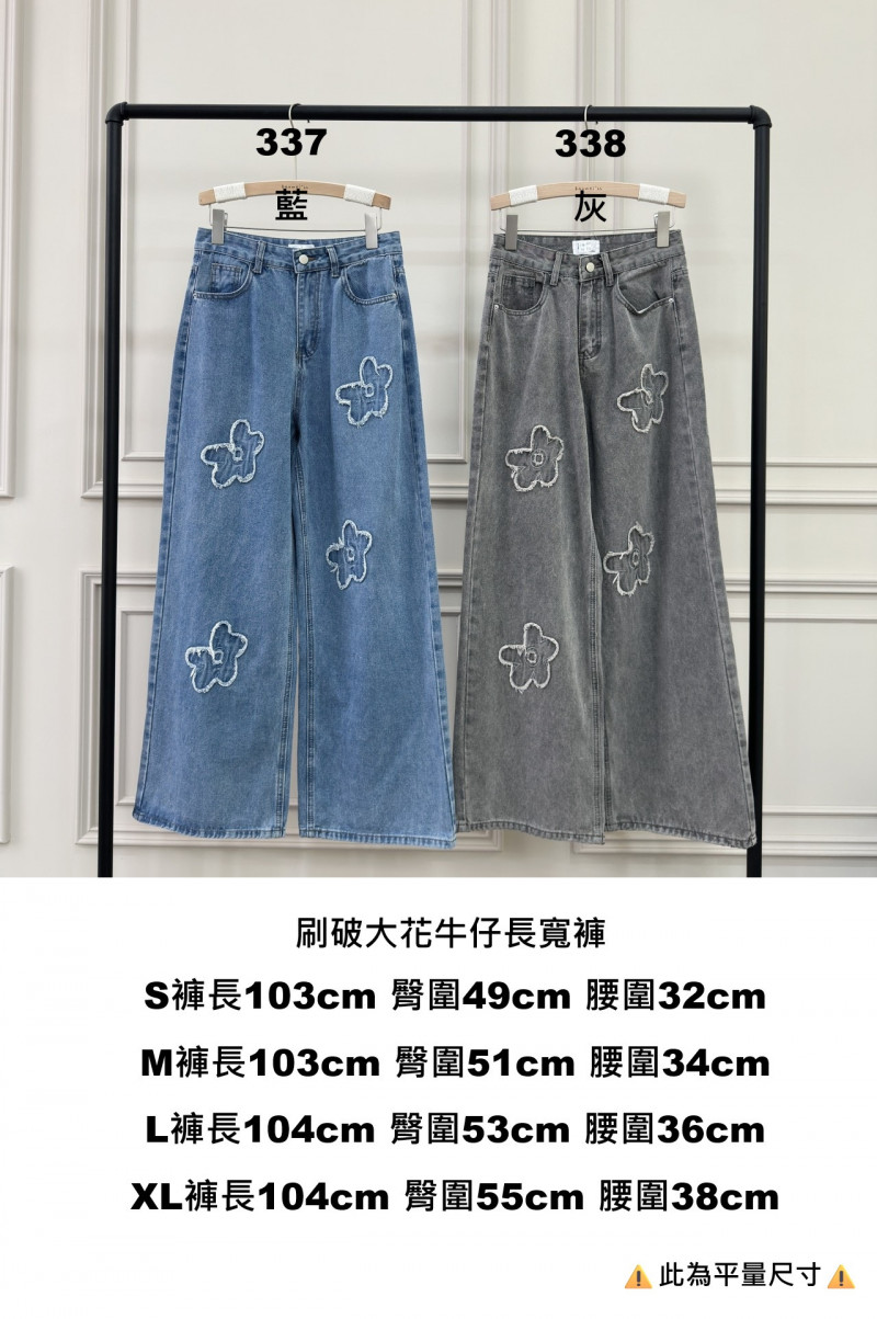 熱賣中🔥 即將售完女V0331-刷破大花牛仔長寬褲