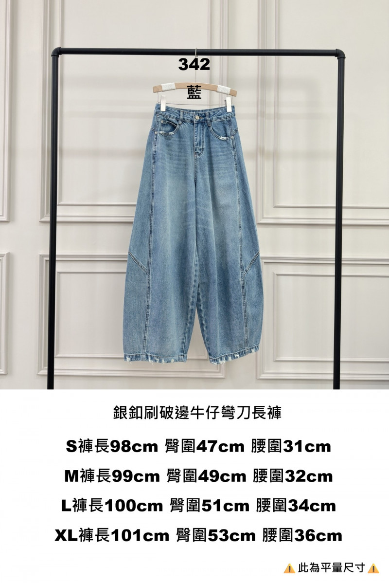 熱賣中🔥 即將售完女KN0331-342藍銀釦刷破邊牛仔彎刀長褲
