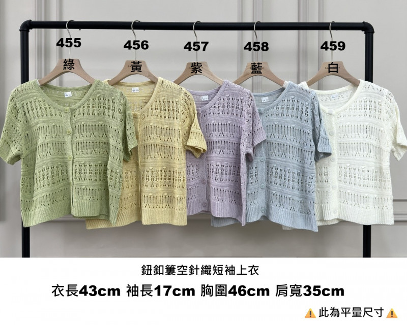 熱賣中🔥 即將售完女V0413-鈕釦簍空針織短袖上衣