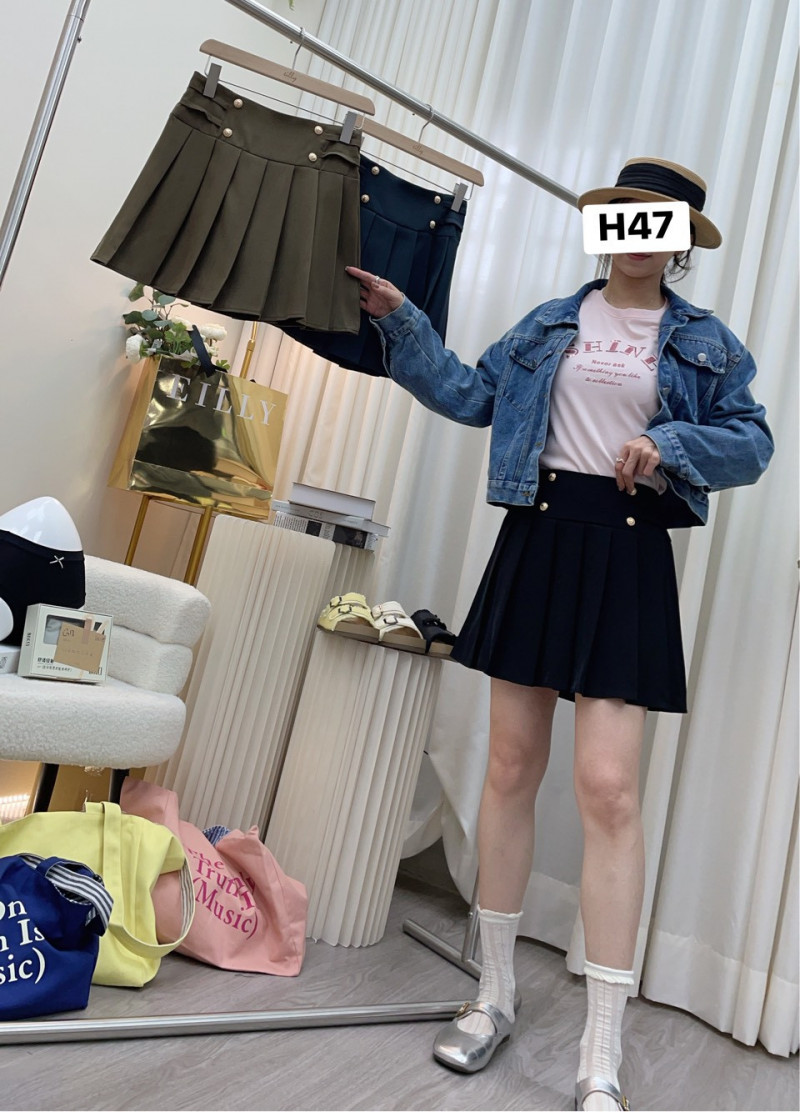 熱賣中🔥 即將售完H47款 (703)高腰西裝挺料金釦百褶學院風短裙$199