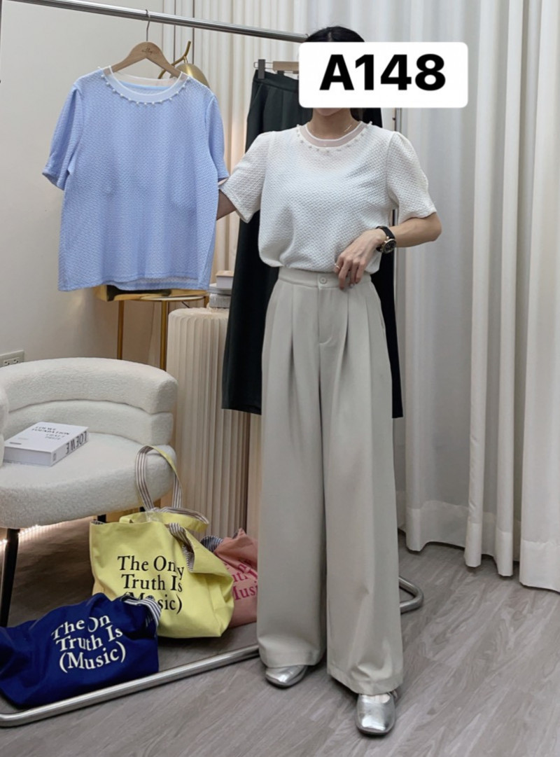 熱賣中🔥 即將售完A148款 (13106)珍珠網紗壓紋公主袖口上衣$299
