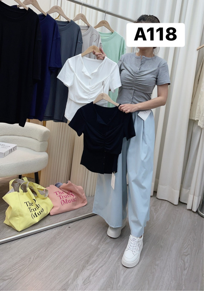 熱賣中🔥 即將售完A118款 (6715)排釦造型彈力抓皺感上衣$199
