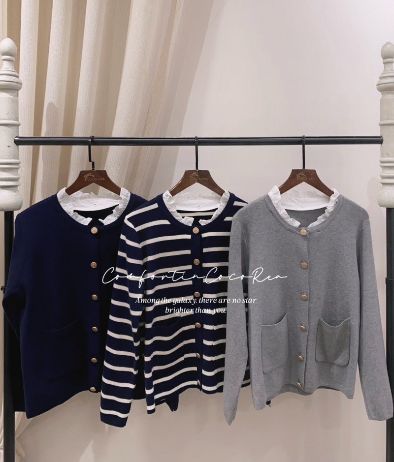 熱賣中🔥 即將售完A69標 預購 荷葉領(可拆)針織小外套 藍/條紋/灰 胸96 長57 連線價1380(前30位加單$1099喜歡+1帶哪裡取(A嘉義取B台中取C郵寄)