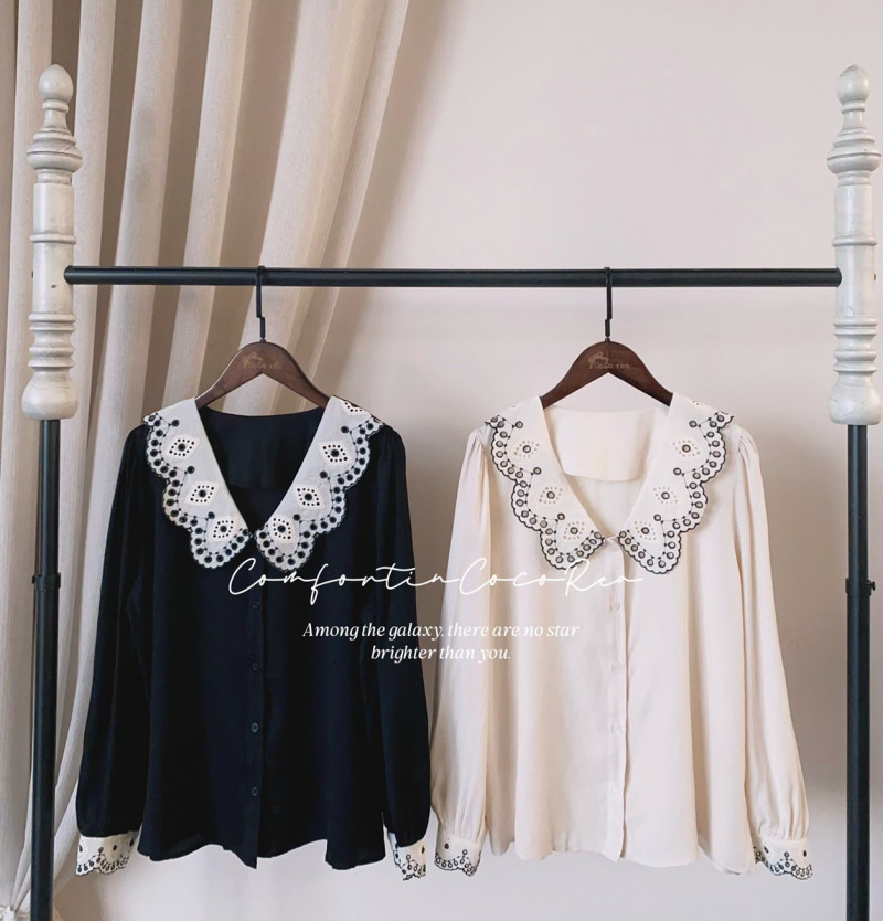 熱賣中🔥 即將售完A81標 預購 燒花領棉雪紡襯衫 黑/米 胸106 長60 連線價1380(前30位加單$1288)喜歡+1帶哪裡取(A嘉義取B台中取C郵寄)