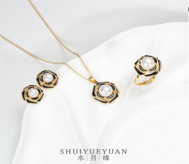 Hot Selling🔥 Almost Sold OutSY0205 偏爱黑色山茶花珍珠套装 淡水无核珍珠