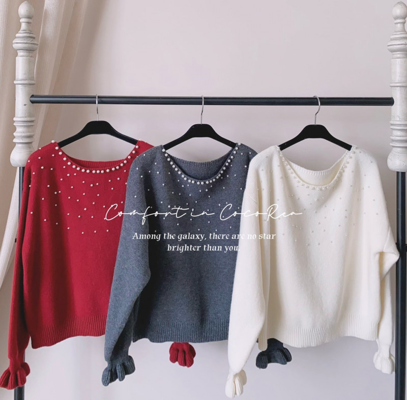 熱賣中🔥 即將售完A64標 預購 叮珍珠一字領荷葉手袖上衣 紅/灰/米 胸114 長56 連線價1258喜歡+1帶哪裡取(A嘉義取B台中取C郵寄)
