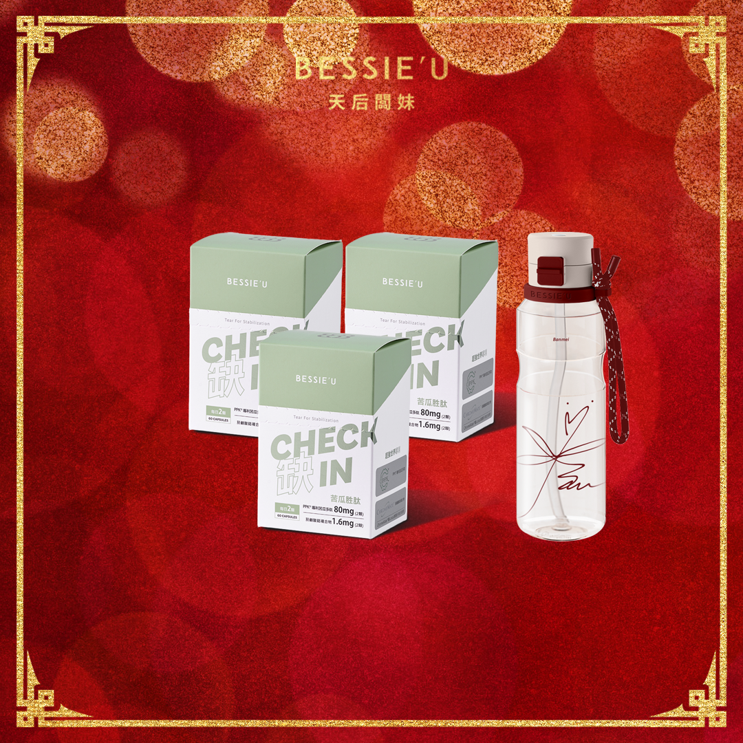 熱賣中🔥 即將售完(8盒)CHECKIN苦瓜胜肽-60顆(送)BESSIEU雙直飲運動水壺770ml(勃根紅)