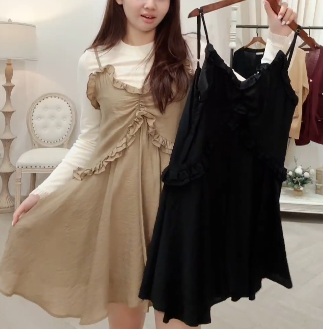 熱賣中🔥 即將售完60標 現貨 吊帶背心洋 黑1/奶茶1 胸90 長80 連線價1588喜歡+1帶哪裡取(A嘉義取B台中取C郵寄)