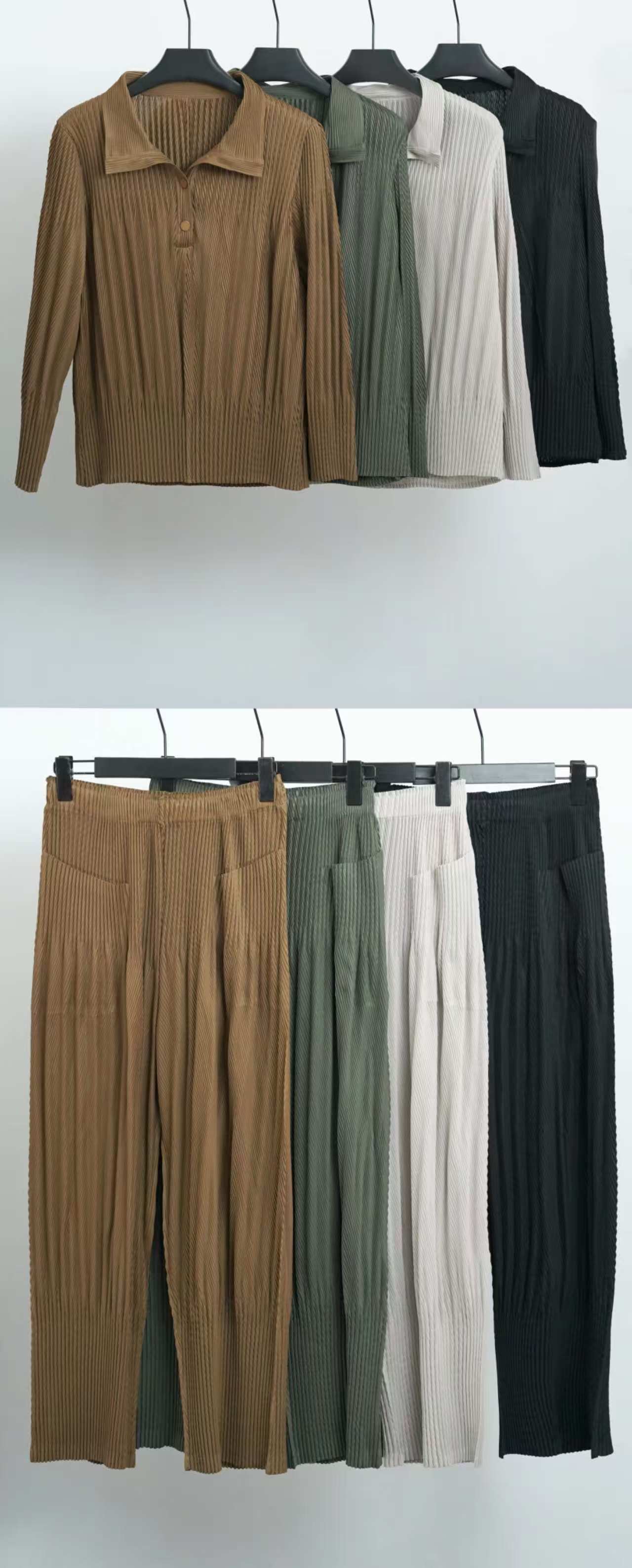 熱賣中🔥 即將售完2191 拼接套裝 Polo上衣 直筒褲子【衣長58cm褲長91cm】