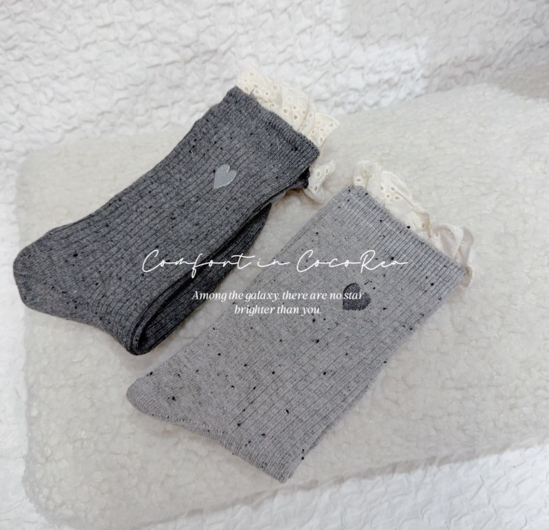 熱賣中🔥 即將售完54標 預購 荷葉愛心彩點襪 深灰/淺灰 1雙 韓國連線價180喜歡+1帶哪裡取(A嘉義取B台中取C郵寄)