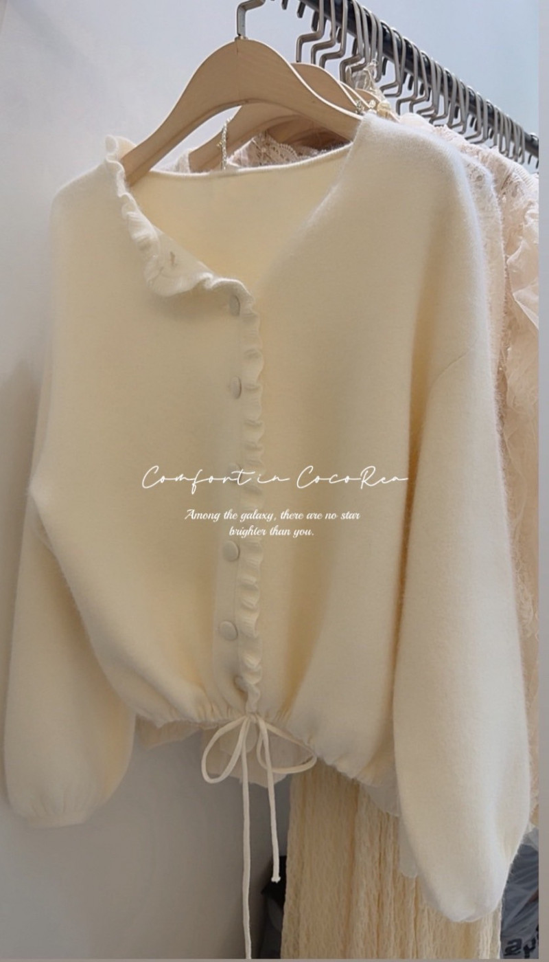 熱賣中🔥 即將售完74標 預購 荷葉滾邊高級毛衣(浣熊毛+喀什米爾)外套 (建議冷水手洗/陰乾晾乾/不可烘) 胸120長56 限量5件韓國連線價3250喜歡+1帶哪裡取(A嘉義取B台中取C郵寄)