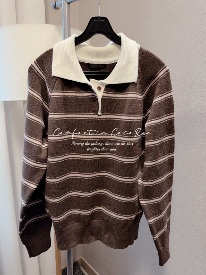 熱賣中🔥 即將售完66標 預購 撞色領含羊絨橫條POLO蝴蝶結釦上衣 胸118 長57 韓國連線價1380(限量價$1299)喜歡+1帶哪裡取(A嘉義取B台中取C郵寄)