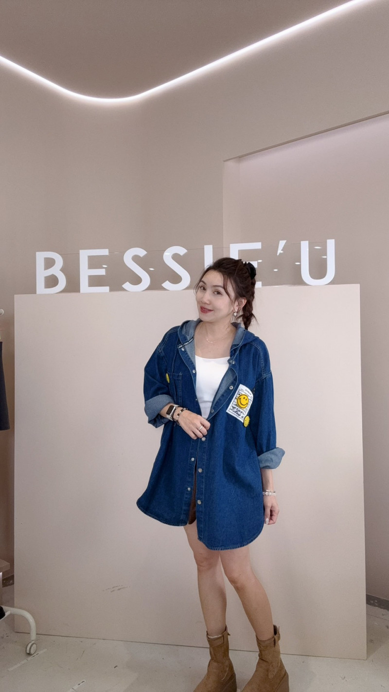 熱賣中🔥 即將售完(預購)女PD0930(10)-微笑連帽牛仔襯衫(3589)(5604藍)