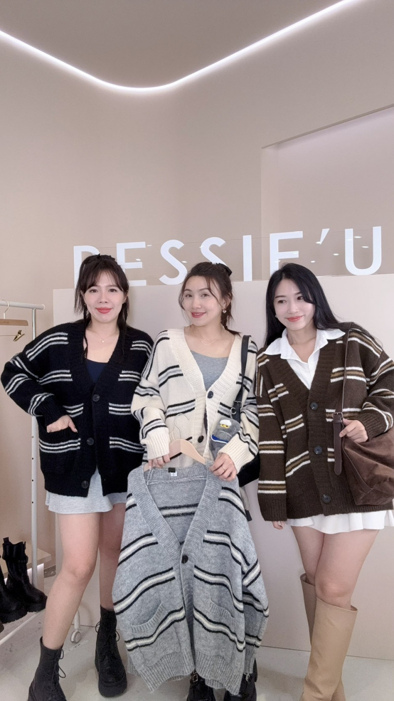 熱賣中🔥 即將售完(預購)女V0905-橫條大V領三釦針織長袖外套(1400141)