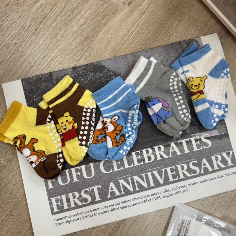 熱賣中🔥 即將售完品FA1110(10)-604維尼家族防滑襪(5雙入)(S)