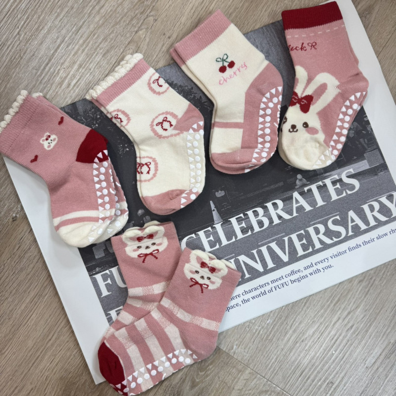 熱賣中🔥 即將售完品FA1110(10)-610粉蝴蝶結兔兔防滑襪(5雙入)(S)