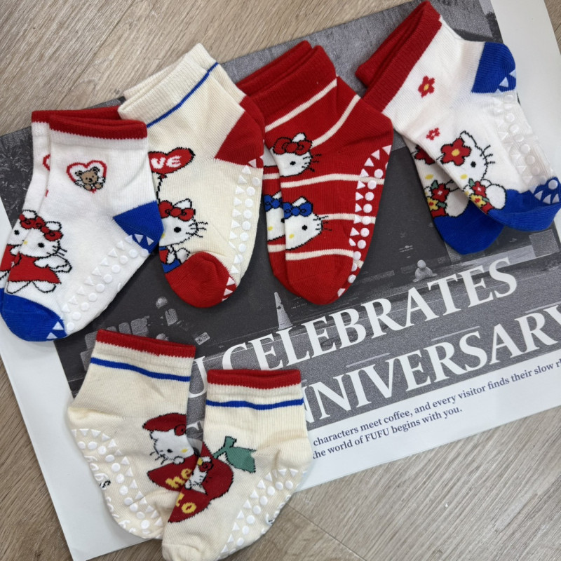 熱賣中🔥 即將售完品FA1110(10)-602紅KT貓防滑襪(5雙入)(S)