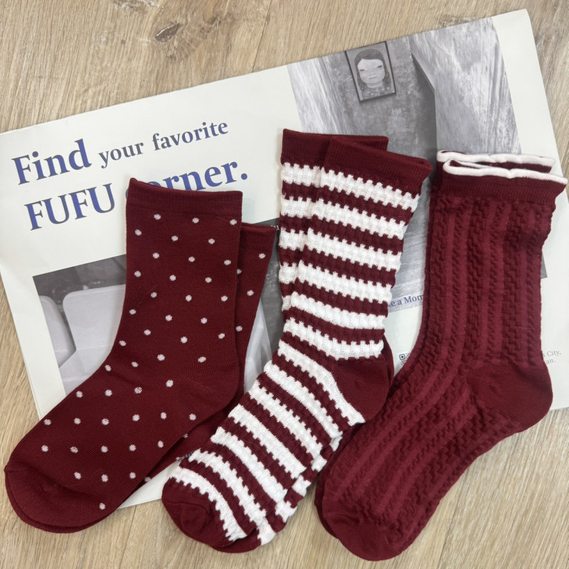熱賣中🔥 即將售完品FA1110(10)-617酒紅中筒襪(3入組)