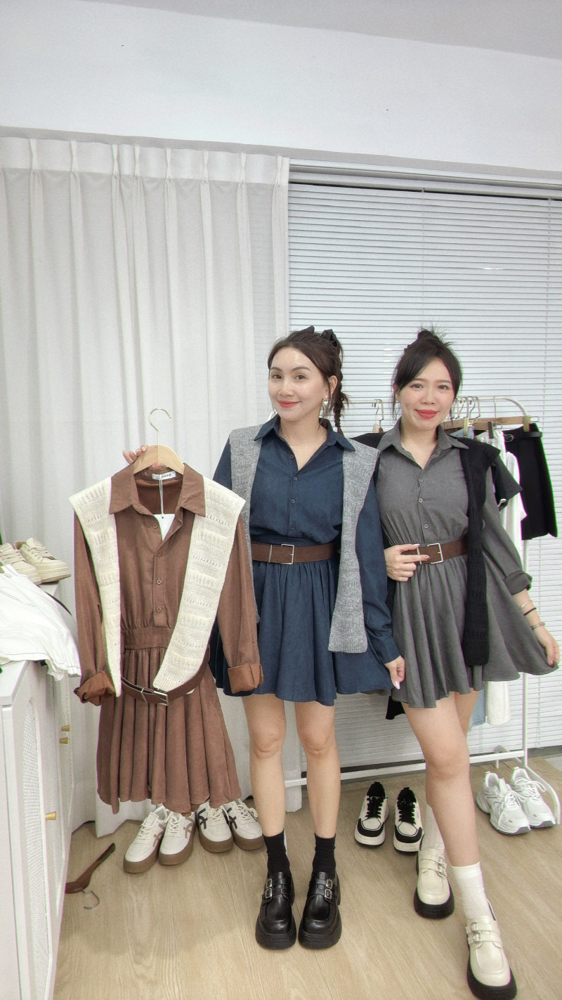 熱賣中🔥 即將售完TH1006(10)-1362藍翻領兩扣洋裝(38791)