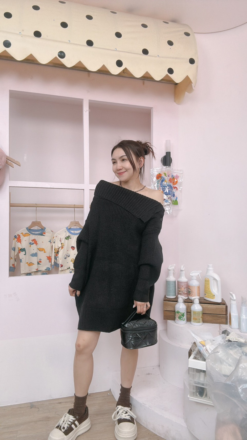 熱賣中🔥 即將售完B04-6303黑斜口針織洋
