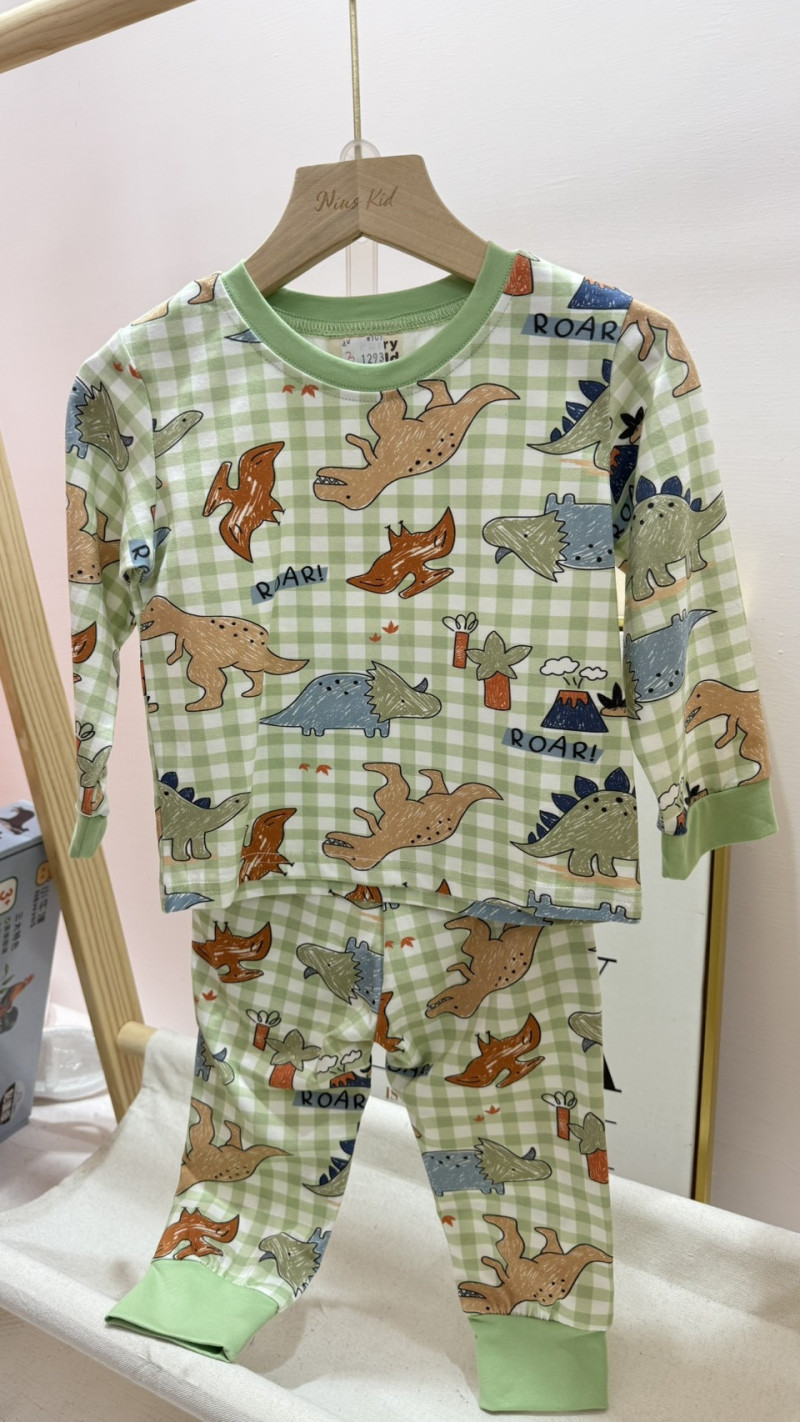 熱賣中🔥 即將售完TH0910(10)-1293綠格紋彩繪恐龍居家套裝(38167)