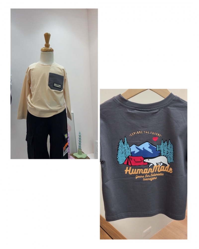 熱賣中🔥 即將售完TH1013(10)-1390奶杏拼接袖動物上衣(38853)