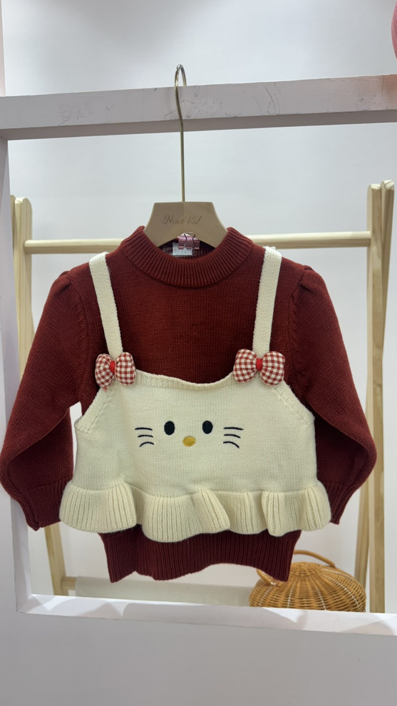 熱賣中🔥 即將售完KTS1110(10)-1479紅KT貓假兩件毛衣(100)
