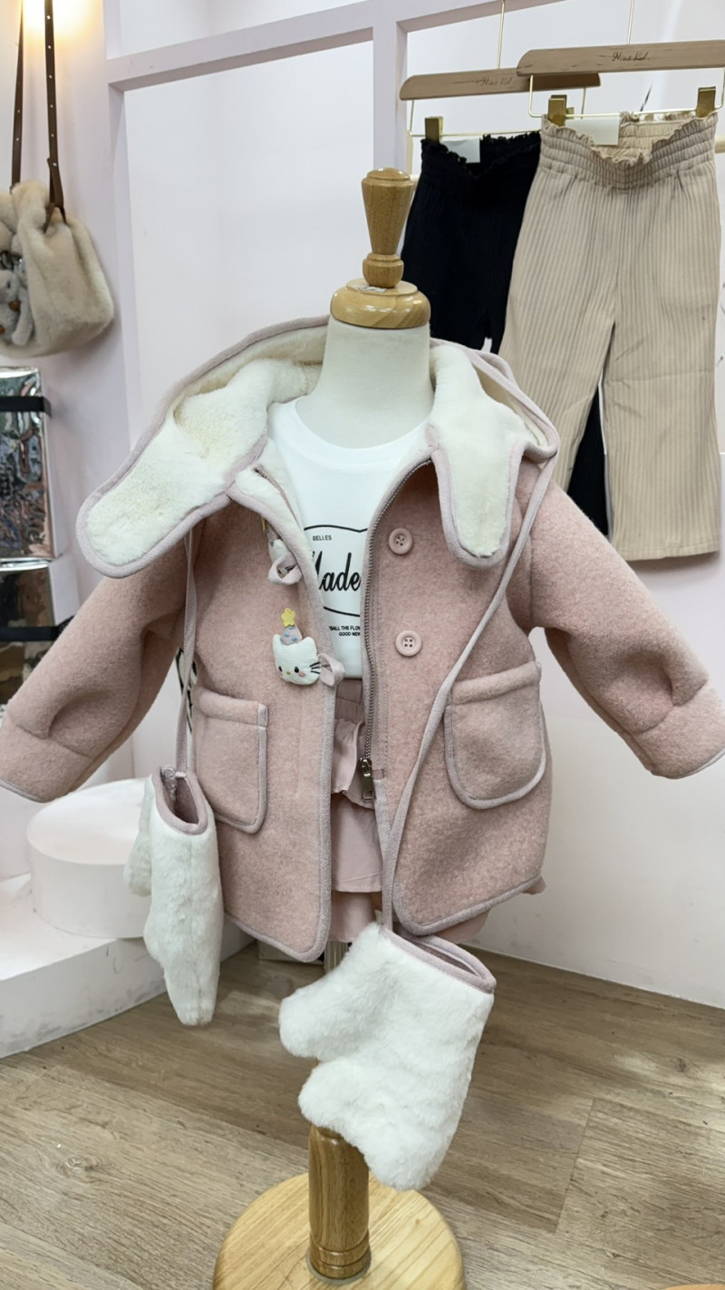 熱賣中🔥 即將售完KTS1110(10)-1505粉毛呢KT連帽外套附手套