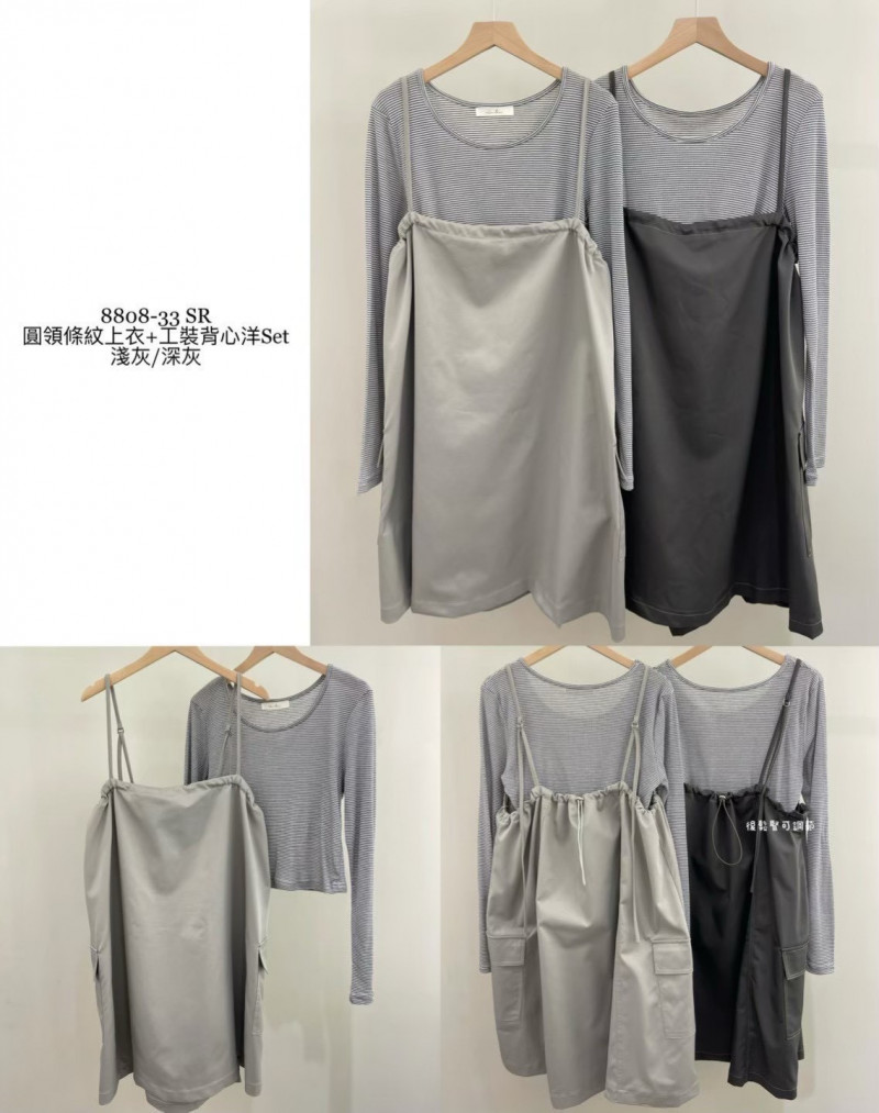熱賣中🔥 即將售完A132圓領條紋上衣+工裝背心洋Set