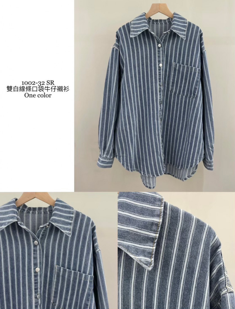 熱賣中🔥 即將售完A109雙白線條口袋牛仔襯衫