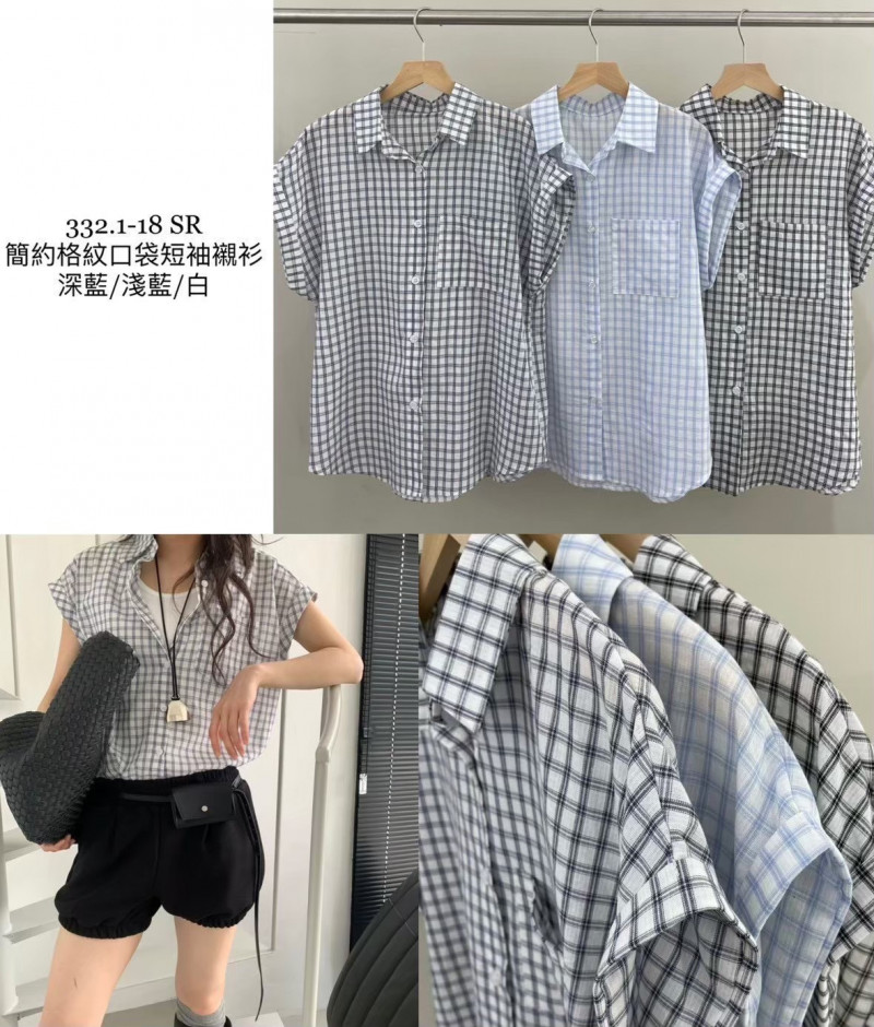 熱賣中🔥 即將售完A114簡約格紋口袋短袖襯衫