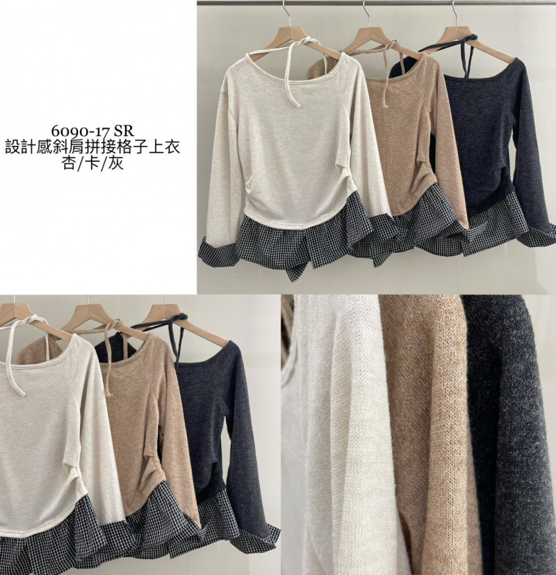 熱賣中🔥 即將售完A127設計感斜肩拼接格紋上衣