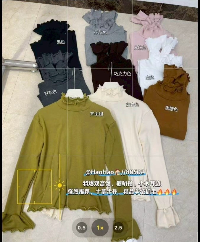 熱賣中🔥 即將售完A102喇叭袖雙領木耳邊羊絨上衣