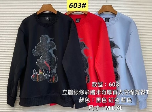 熱賣中🔥 即將售完119立體彩繪米奇厚實太空棉寬鬆T(黑)#603