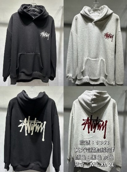 熱賣中🔥 即將售完105電繡加絨帽T#1353