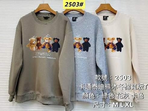 熱賣中🔥 即將售完101卡通泰迪熊沐冬棉寬版T#2503
