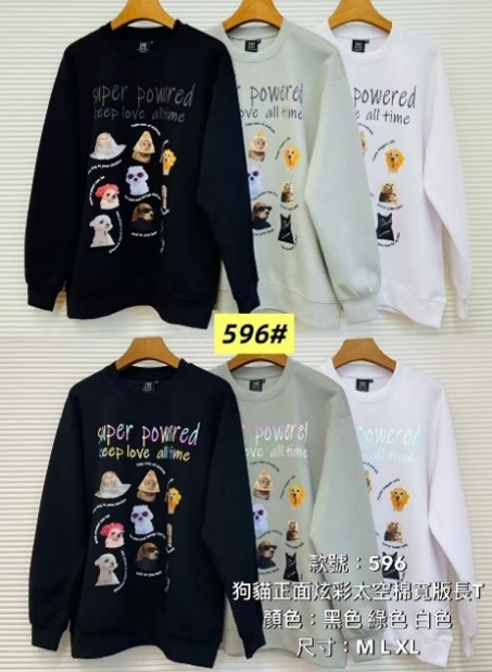 熱賣中🔥 即將售完120狗貓正面炫彩太空棉長T#596