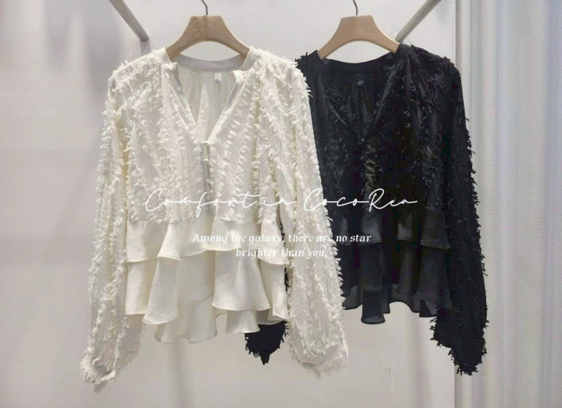 熱賣中🔥 即將售完B62標 預購 下擺雙層荷葉羽毛天絲雪紡上衣 黑/白 胸104 長52-58 連線價1480喜歡+1帶哪裡取(A嘉義取B台中取C郵寄)