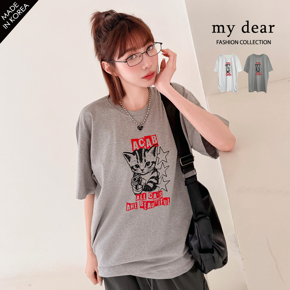 熱賣中🔥 即將售完MD韓製88折/手拿槍的小貓膠印T恤2色【A01251249】