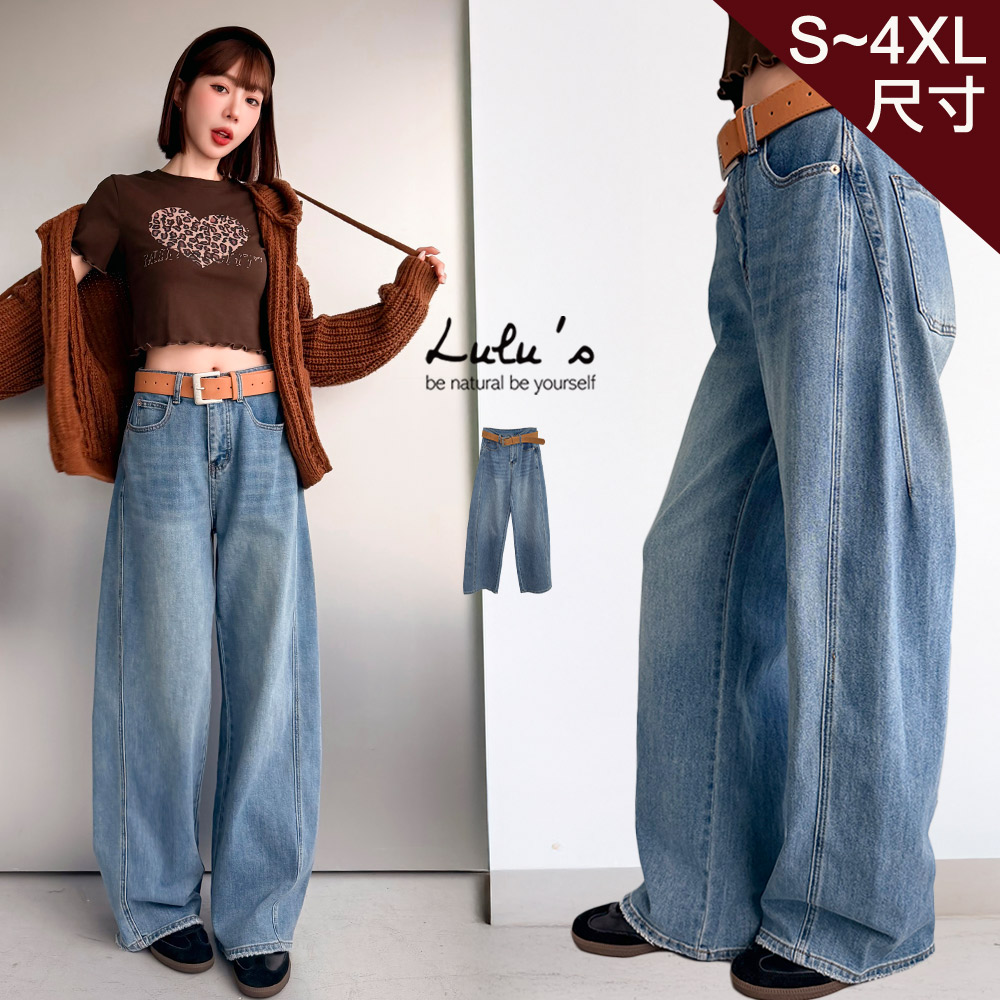 熱賣中🔥 即將售完新品8折/修修腿線條牛仔微彎刀褲附皮帶S-4XL藍【A04250298】