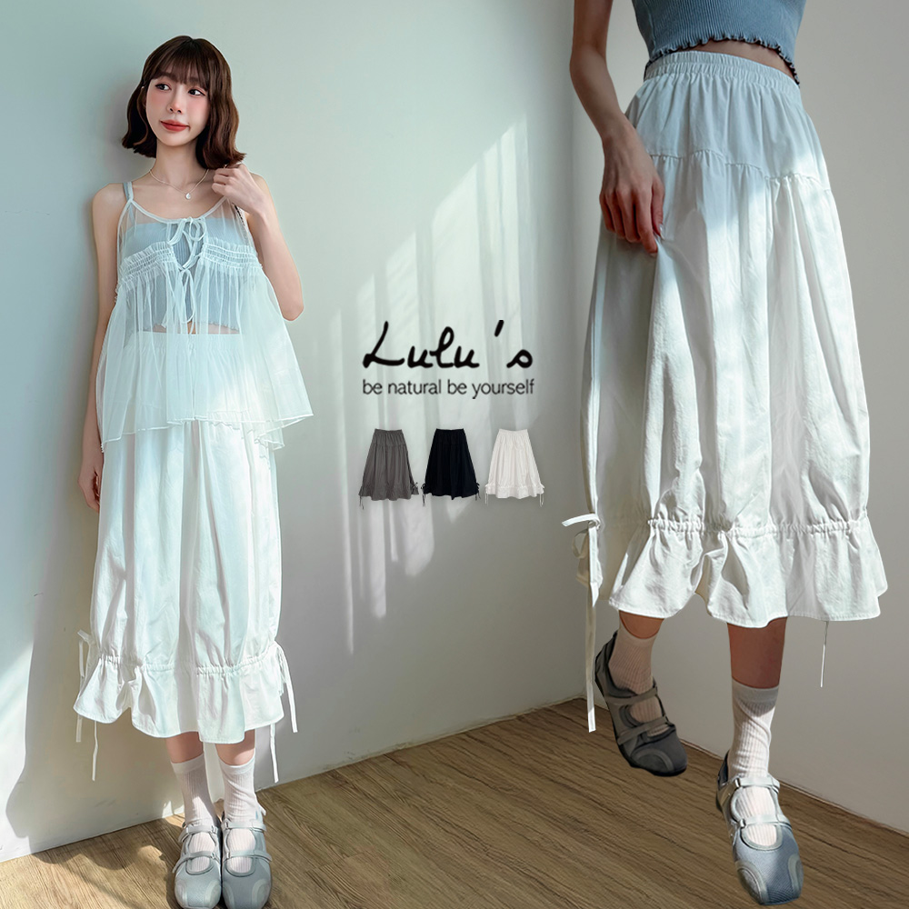 熱賣中🔥 即將售完新品8折/韓系微甜下擺抽繩中長裙3色【A05250140】