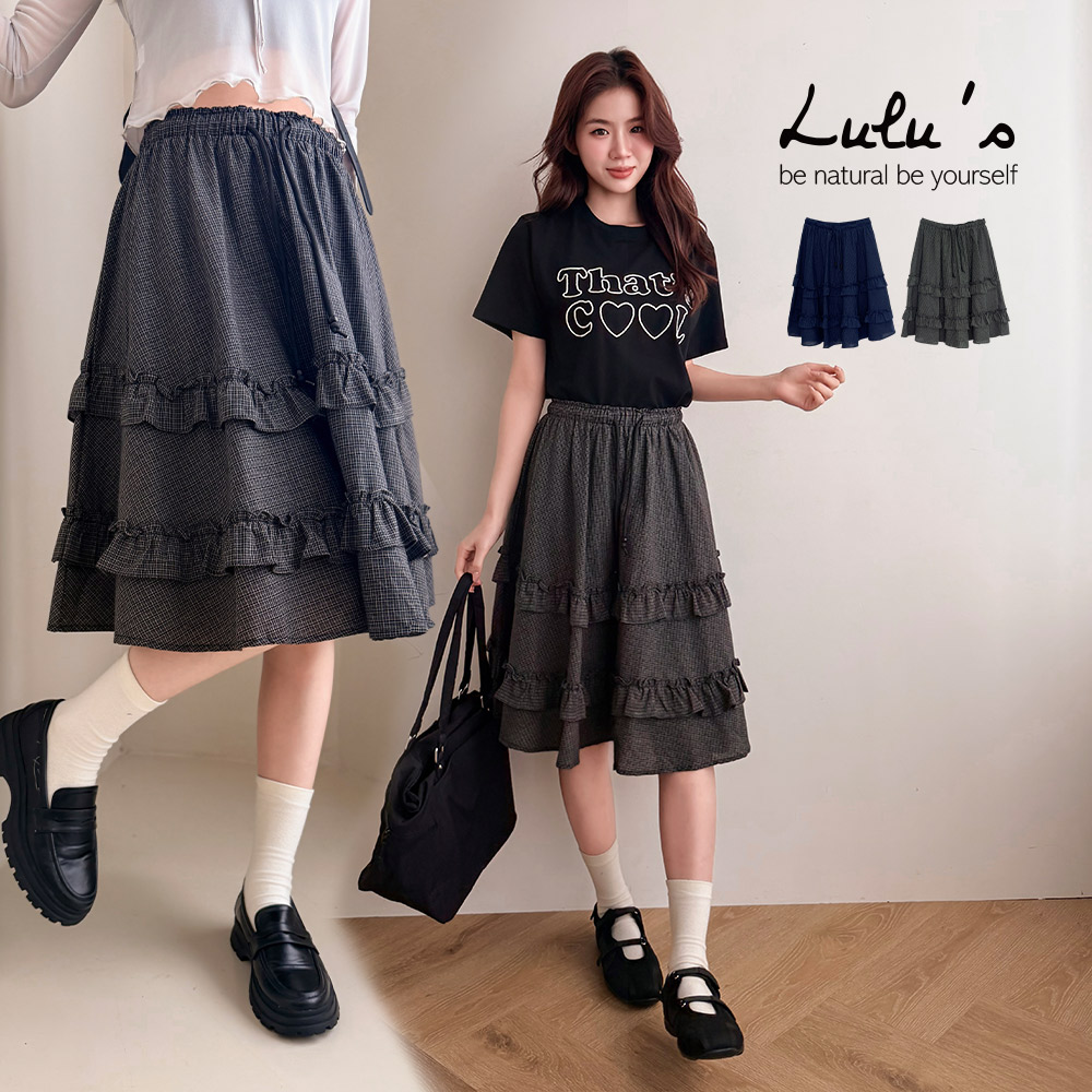熱賣中🔥 即將售完新品8折/復古格紋花邊腰鬆緊中裙2色【A05250142】